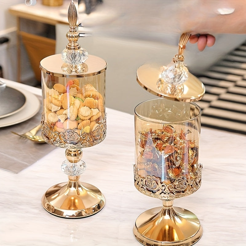 2 estilos disponibles, una jarra de almacenamiento de vidrio de cristal europeo con tapa para mesa de café de sala de estar, canasta de dulces de encaje, adorno decorativo.