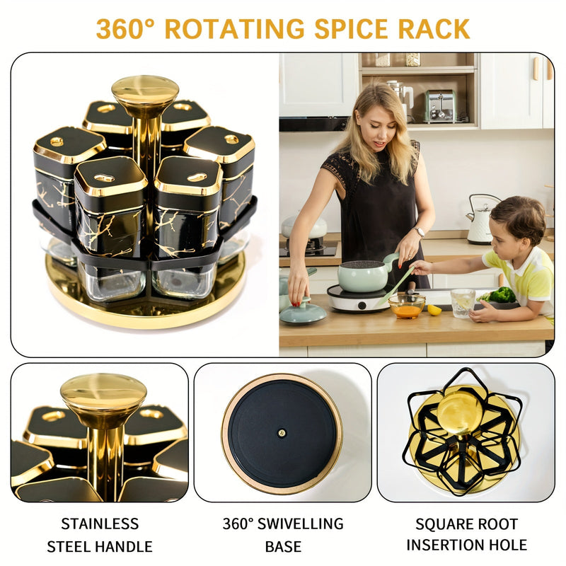 Estante giratorio de especias con 6 frascos de especias: Ahorra espacio y conveniencia - Organizador de cocina - Incluye 6 frascos de especias etiquetados, Estante giratorio de especias/Organizador de especias/Organizador de especias, Acero inoxidable