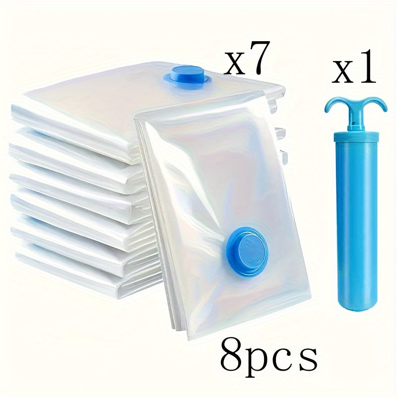Juego de 8 bolsas de almacenamiento de vacío extra grandes de 40x60cm con 1 bomba manual - Ahorra espacio, compresión hermética, a prueba de polvo y humedad, adecuado para ropa y ropa de cama, adecuado para dormitorios, armarios y mudanzas