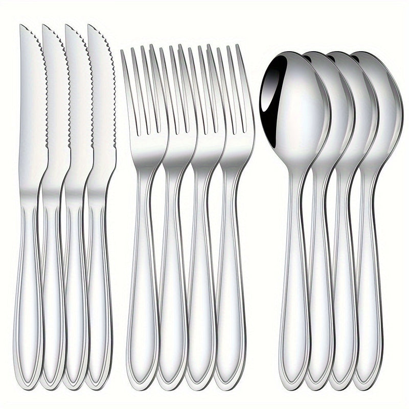 Juego de cubiertos de acero inoxidable, 12 piezas, pulido espejo, apto para lavavajillas, ideal para comedor en casa