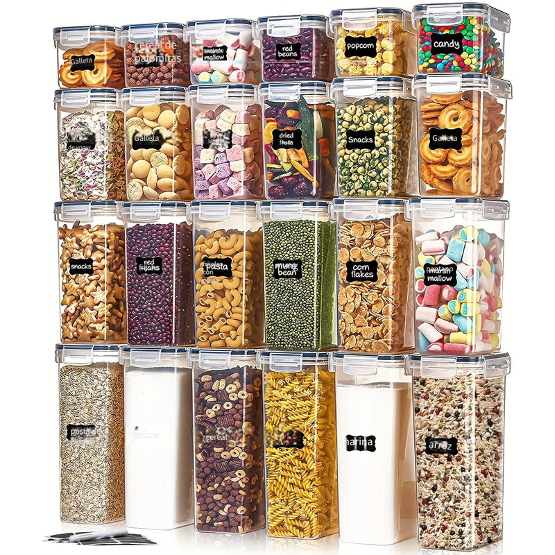 Juego de 24 contenedores herméticos para alimentos, libres de BPA, con tapa, organizadores de despensa, aptos para lavavajillas, incluye etiquetas y marcador, ideal para cereales, arroz, té, frutos secos, suministros de cocina