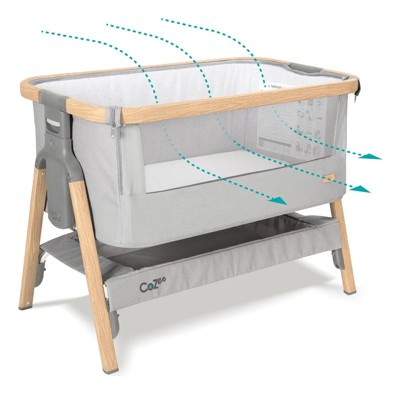 CoZee® Moisés 2 en 1 para bebé y mesita de noche, de plegado rápido, cuna con 6 alturas de colchón y ventana de malla transpirable, colchón incluido, 0-6 meses plateado y roble
