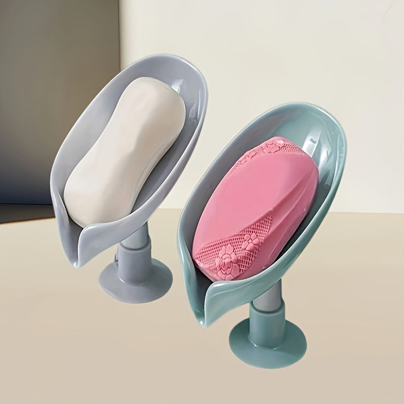 Porta Jabón con Ventosa Sin Taladro - Organizador Ovalado para Baño y Cocina con Compartimentos Dobles, Plato de Plástico Duradero Montado en la Pared para Higiene y Ahorro de Espacio