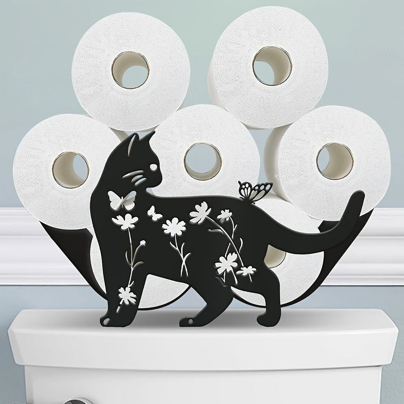 Portarrollos de papel higiénico de gatito de dos caras: Adorable organizador decorativo para el hogar de hierro animal, tiene capacidad para 8 rollos adicionales para baño, tocador o estante de almacenamiento Decoraciones de Halloween, Navidad