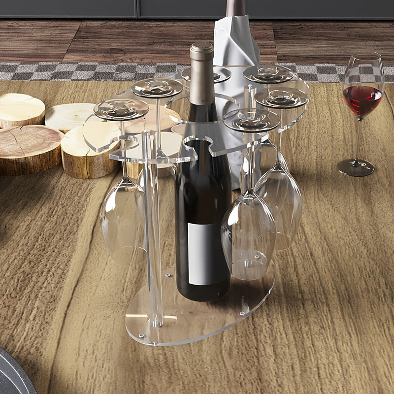 Elegante Soporte para Copas de Vino de Acrílico - Diseño de Vientre de Caballo, Acabado Antiguo, Estante Independiente para Copas con 6 Ganchos para Decoración de Hogar y Bar