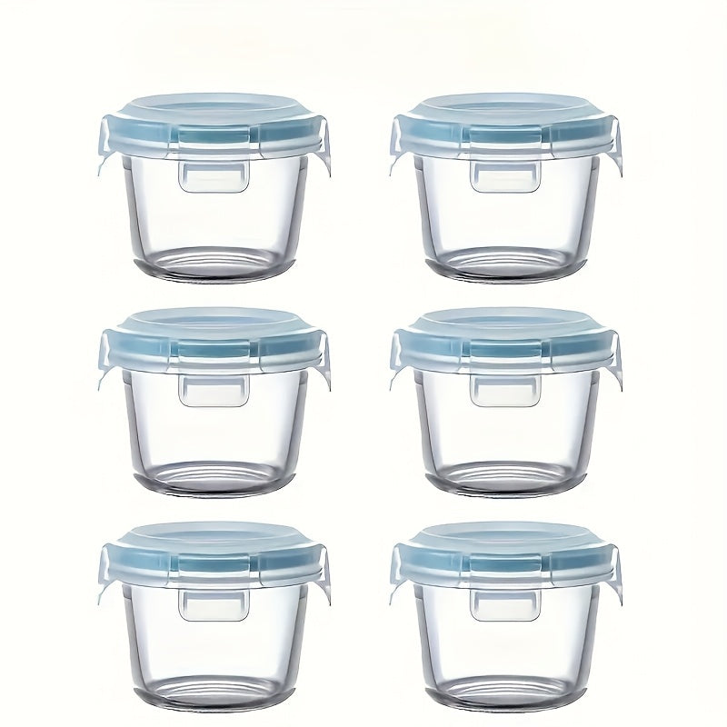 6 paquetes de recipientes de vidrio para almacenamiento de alimentos con tapas abatibles - Recipientes redondos multiusos y reutilizables - Sellado a prueba de fugas para refrigerios y salsas - Apto para microondas, congelador y lavavajillas