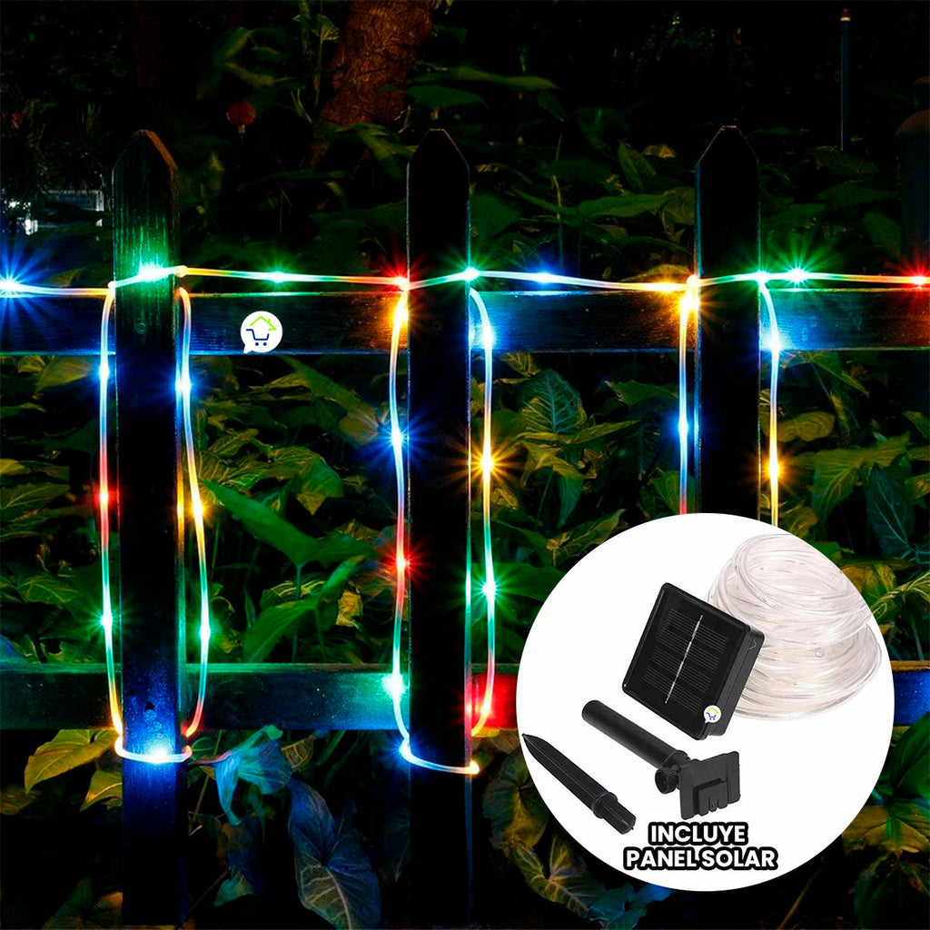 Ilumina tus celebraciones navideñas y de halloween con nuestra manguera de luces LED solar, diseñada para resistir exteriores. Disfruta de la magia de las luces multicolores sin preocuparte por la energía, gracias a su carga so...