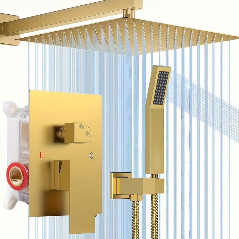 Conjunto de Ducha con Cabezal de Lluvia y Rociador Manual, Grifo de Alta Presión para Ducha Incluye Válvula de Montaje Interno y Moldura Decorativa en Color Dorado Pulido 30.48 cm