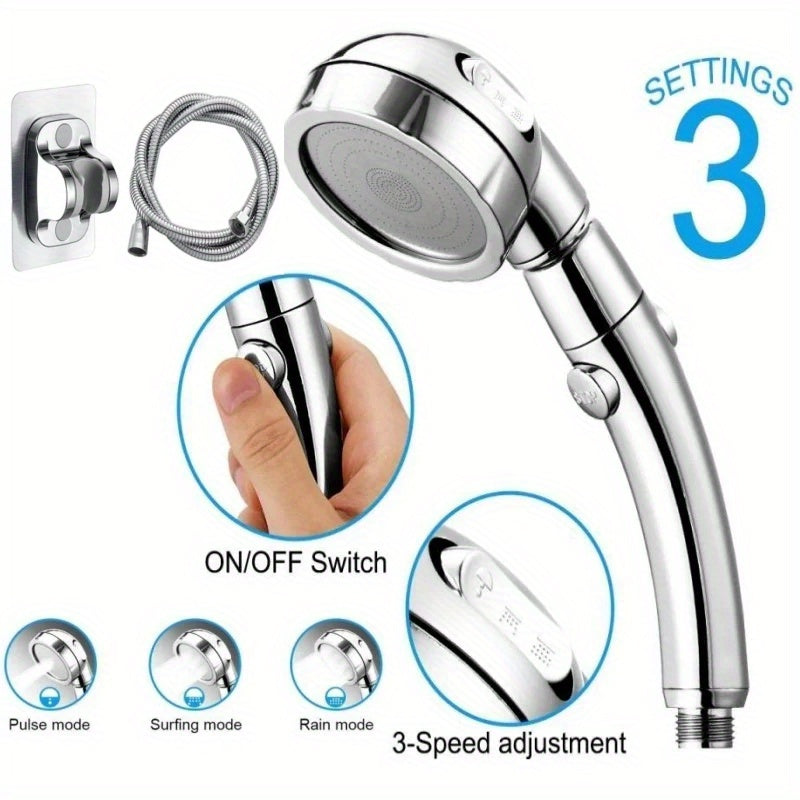Juego de 3 piezas de Cabezal de Ducha Circular, con Soporte y Manguera, Cabezal de Ducha Multifuncional de Alta Presión con 3 Modos, Rociador Diario para Baño con Soporte y Manguera, Accesorios de Baño
