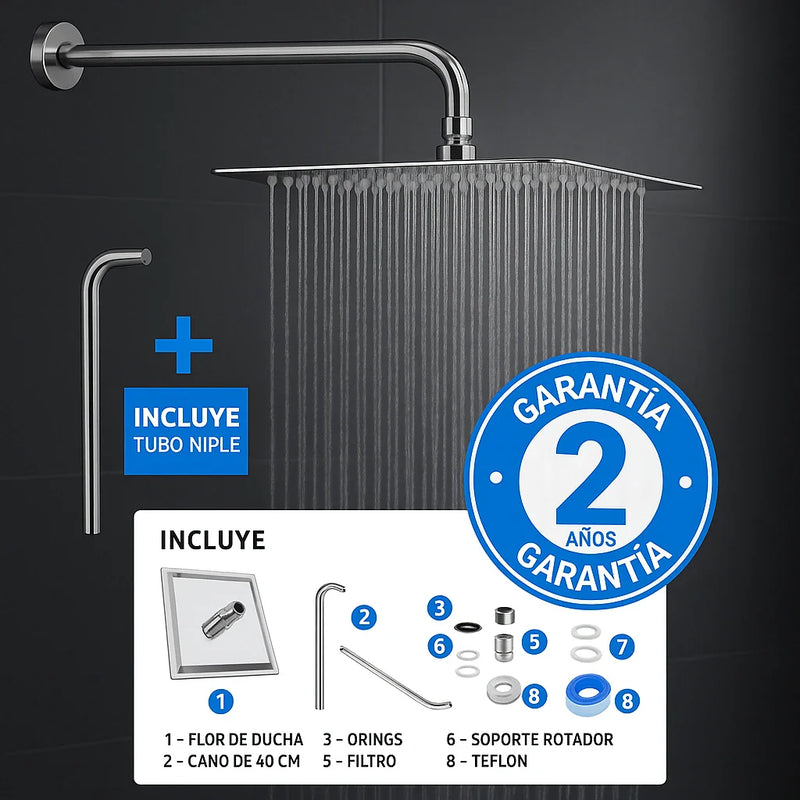 Kit Regadera Cuadrada Ducha Acero Inoxidable 20 X 20 Mas Tubo