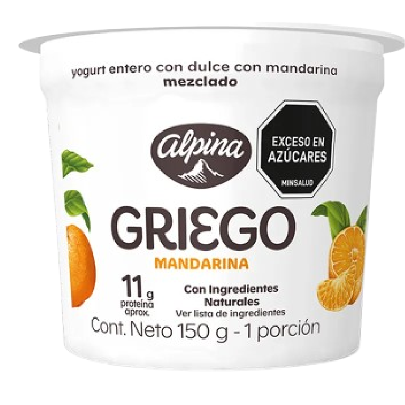 Disfruta del delicioso sabor del Yogurt Griego Alpina con mandarina. Este yogurt ofrece una textura cremosa y un toque de frescura cítrica que lo hace irresistible, ideal para un snack saludable o complemento en tus comidas.