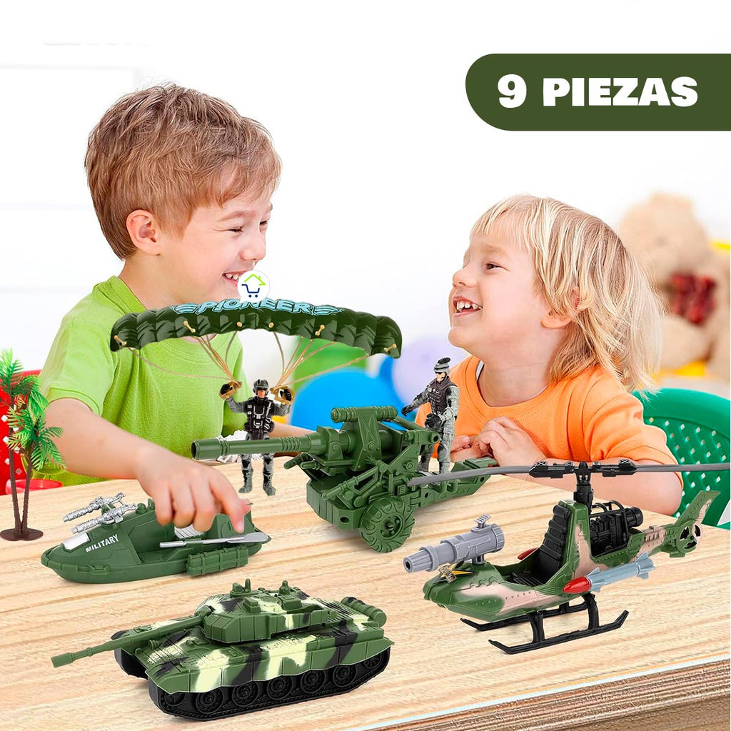 El regalo perfecto para los niños amantes del mundo militar y su profesión, con vehículos y figuras a escala que asombrarán al niño y a sus amigos.