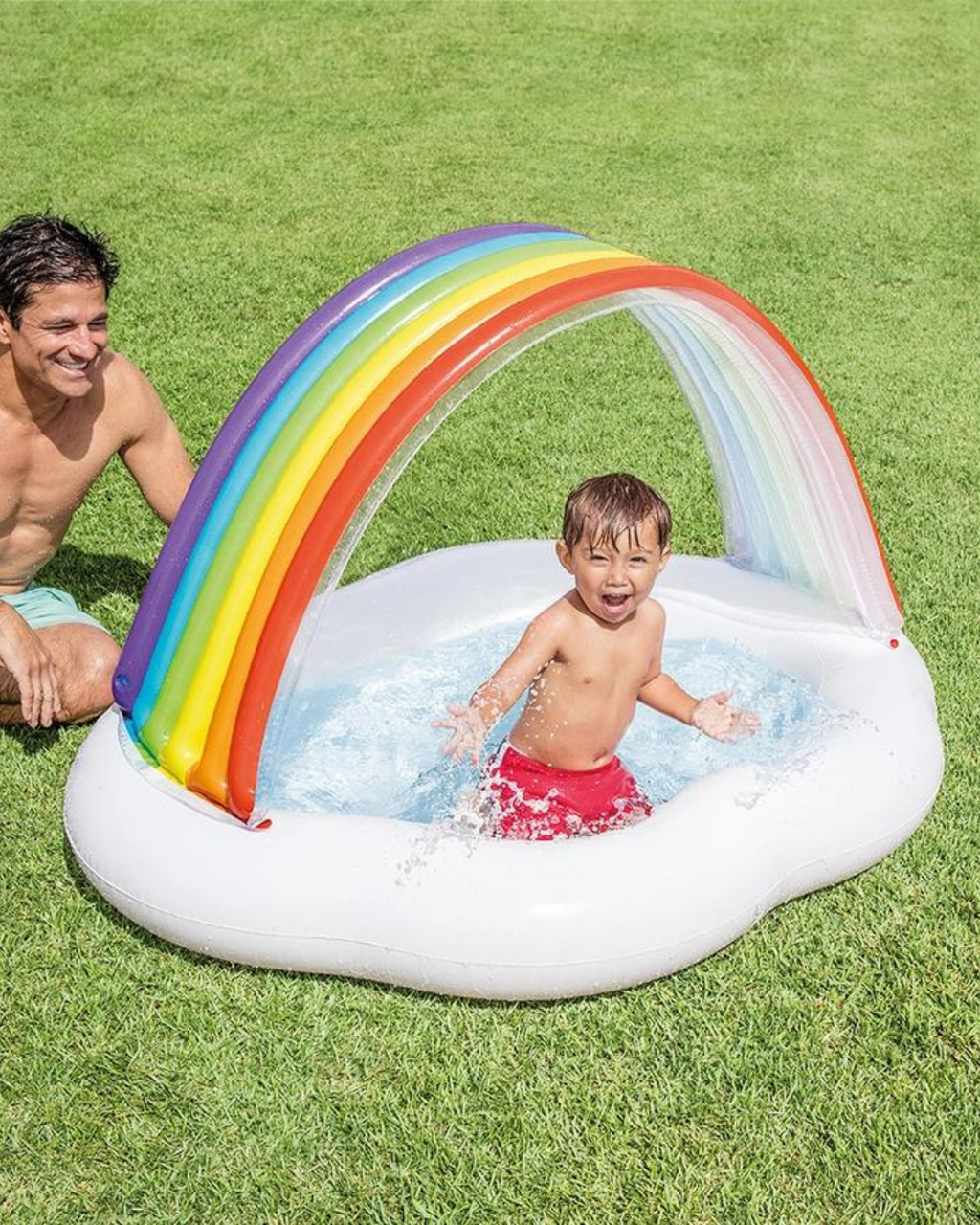 La piscina en forma de nube con arco iris es un verdadero placer para los más pequeños. La piscina no sólo tiene un aspecto bonito, sino que también ofrece sombra gracias al arco iris. Para que incluso los más pequeños puedan d...