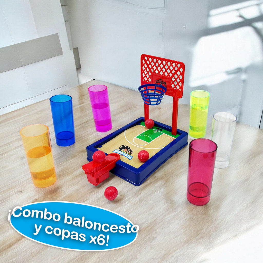 Afina tus tiros con nuestro divertido juego de mesa mini basquetbol con copas, coloca la bolita en la base de tiro, presiona para dar potencia y suelta para encestar, y con las copas tequileras podrás retar a tus amigos y famil...