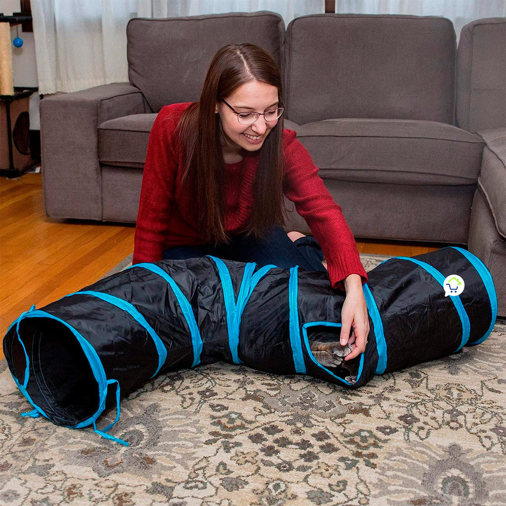 Juguete para gatos con diseño plegable que se guarda y abre fácilmente, los gatos y mascotas encontraran un lugar para esconderse, jugar e interactuar con otros gatos, está hecho de un material de fácil lavado.
