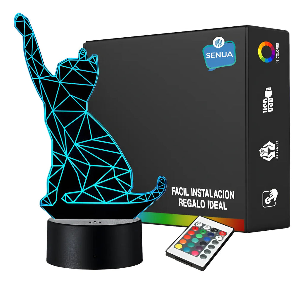 Lampara led multicolor holográfica, grabada en laser. La lamina de acrílico puede retirarse de la base. El encendido y control desde la base es táctil pero también a control remoto. La alimentación eléctrica es por...