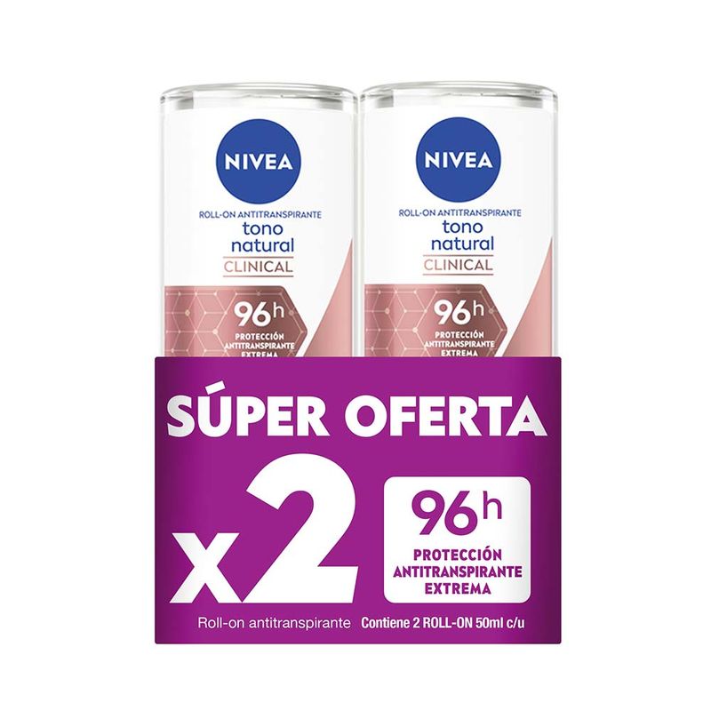 Desodorante Nívea Roll On clinical tono natural x2und x100ml c/u