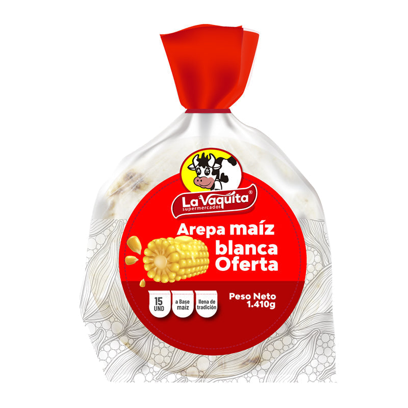 Arepa la vaquita hecha a base de masa de maíz, tiene una forma circular y delgada y es ideal para los desayunos y como acompañante en caldos y asados.
