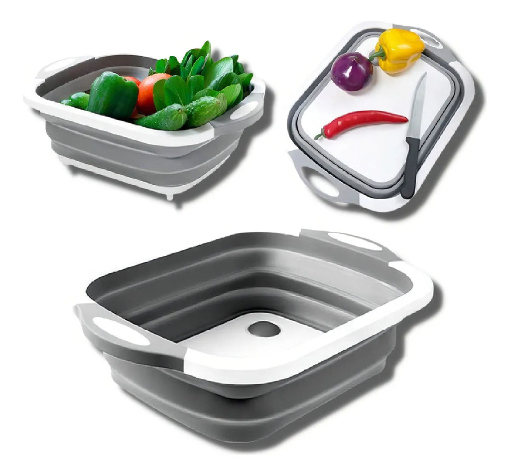 Descripción Tabla de cortar retráctil 3 en 1 de silicona La tabla de cortar retráctil multiusos es la herramienta ideal para cortar carne, almacenar y lavar frutas, verduras, legumbres y otros. Debido a que es retráctil, se t...