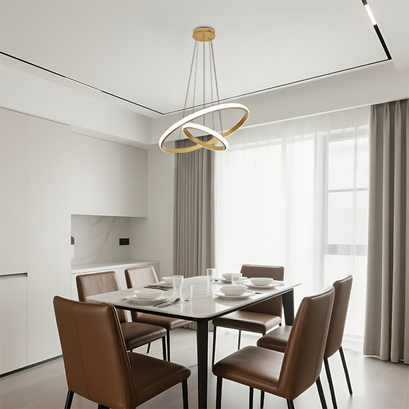 1 pieza, moderno candelabro dorado, candelabro LED irregular y aerodinámico, candelabro de altura ajustable, adecuado para isla de cocina, comedor, dormitorio, sala de estar, pasillo, porche, candelabro LED de 2 anillos, ajustable en tres temperaturas de