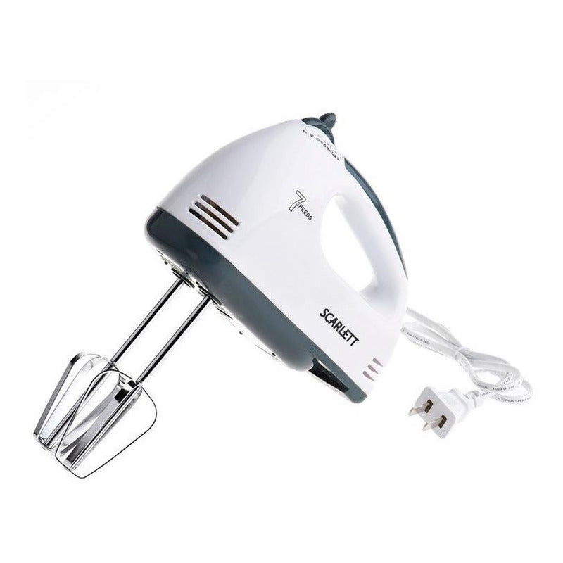 La batidora Scarlett HE-133 es práctica y sencilla de usar. Su diseño compacto y de fácil agarre te permitirá batir mezclas esponjosas sin forzar tus brazos y muñecas. Podrás moler ingredientes en el mismo recipiente en el que se preparan y utilizarla para hacer diferentes tipos de purés, salsas y sopas. Además incluye 2 batidores de gancho.