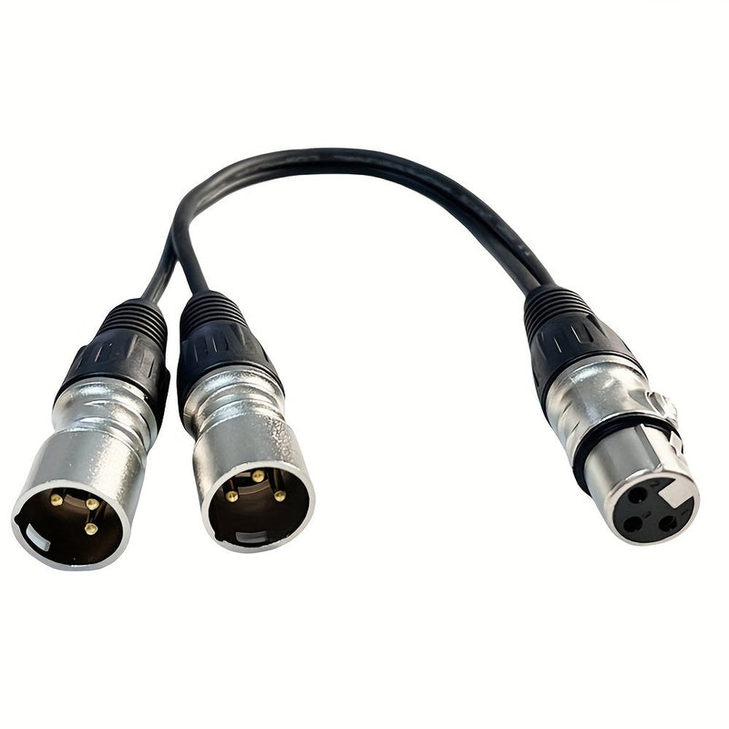 1pc Adaptador de cable de interfaz de audio profesional de 1 a 2, conexión XLR macho y hembra de tres núcleos, compatible con PC, consolas de mezcla, micrófonos, altavoces, amplificadores, controladores de iluminación de escenario - Negro, alimentación c