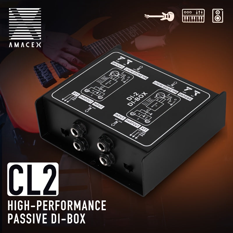 1pc AmaceX CL-2 Caja de DI de alto rendimiento pasiva, construcción de hierro, transformador de impedancia de 1/4", atenuador de entrada, compatible con PC, XLR/salida balanceada/no balanceada, alimentación eléctrica de la habitación, ≤36V