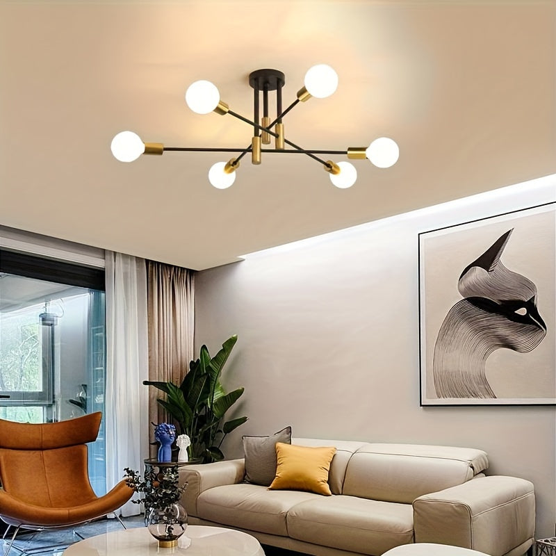 1pc Lámpara Colgante Industrial Moderna en Negro y Dorado - Elegante Aplique de Techo con 4/6 Bombillas, Montaje Semi-Encastrado, Base E26/E27 para Sala de Estar, Comedor, Dormitorio, Cocina, Café - Acabado Metálico Elegante, Sin Bombillas Incluidas, Luc