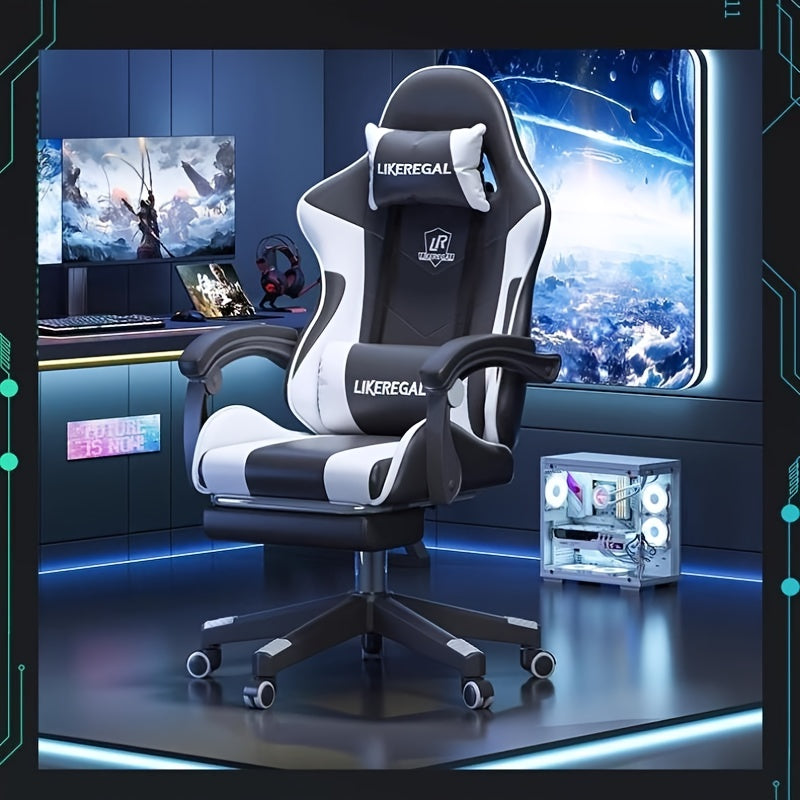 1pc Silla de Juego Ergonómica con Altura Ajustable - Negro y Blanco, Silla de Oficina de Nylon Cómoda con Cojín Grueso, Soporte Lumbar, Función de Reclinación y Ruedas para Movimiento Fácil - Ideal para Uso en Casa y Oficina