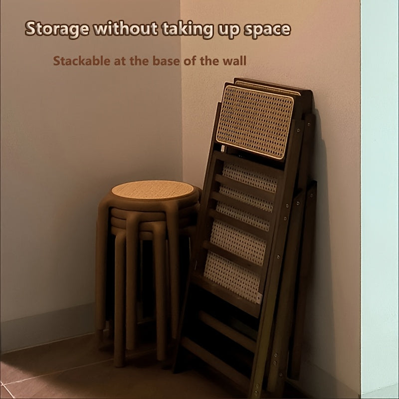 1pc Silla Plegable Roja con Respaldo de Ratán - Transpirable, Taburete de Madera Dura para Comedor y Oficina, Decoración del Hogar, Silla Plegable
