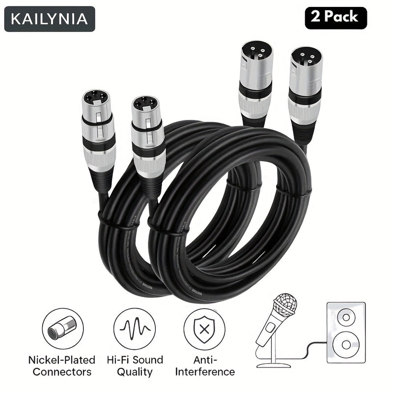 2 Piezas de Cable XLR Profesional KAILYNIA 3 Pines, Macho a Hembra, Cables Blindados para Estudio, Micrófono a Mezclador, Podcasting y Altavoces Activos - Varios Longitudes Disponibles