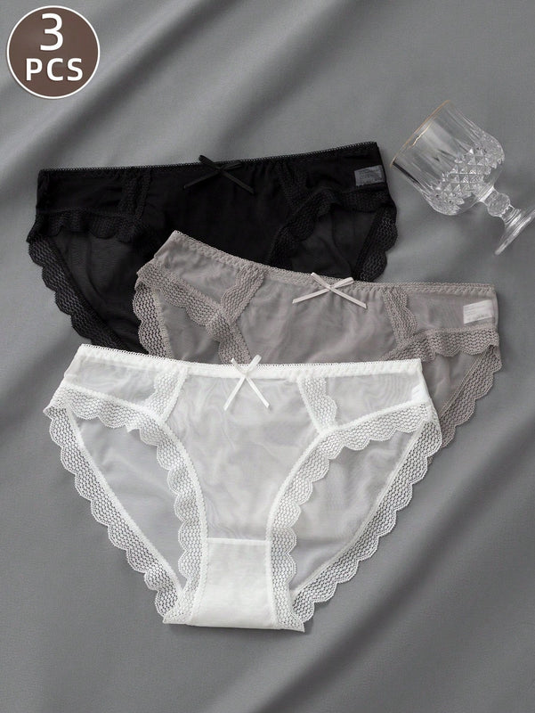 3 piezas de ropa interior de encaje para mujer, pantalones comodos, suaves y transpirables de cintura media