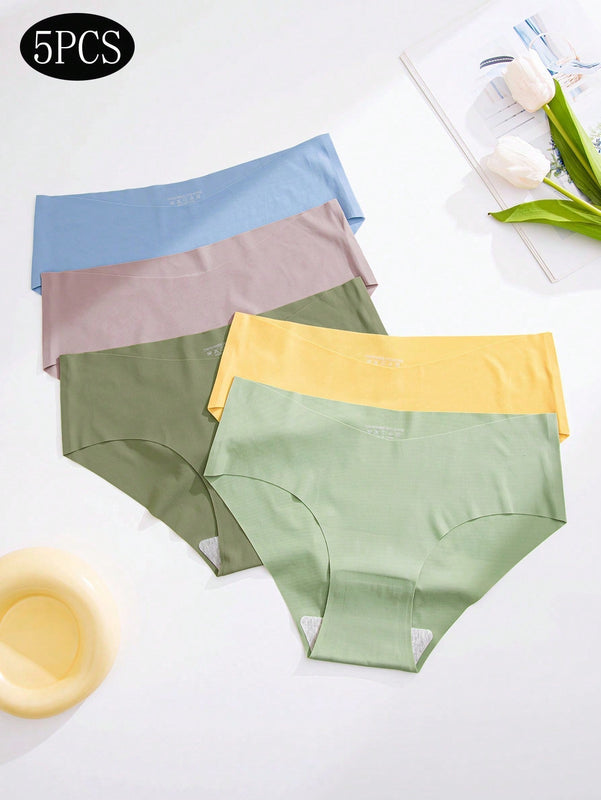 5 Piezas/set Bragas De Triangulo Sin Costuras Para Mujeres, Comodas Y Transpirables Con Levantamiento De Cadera En Cintura En V, De Color Aguacate