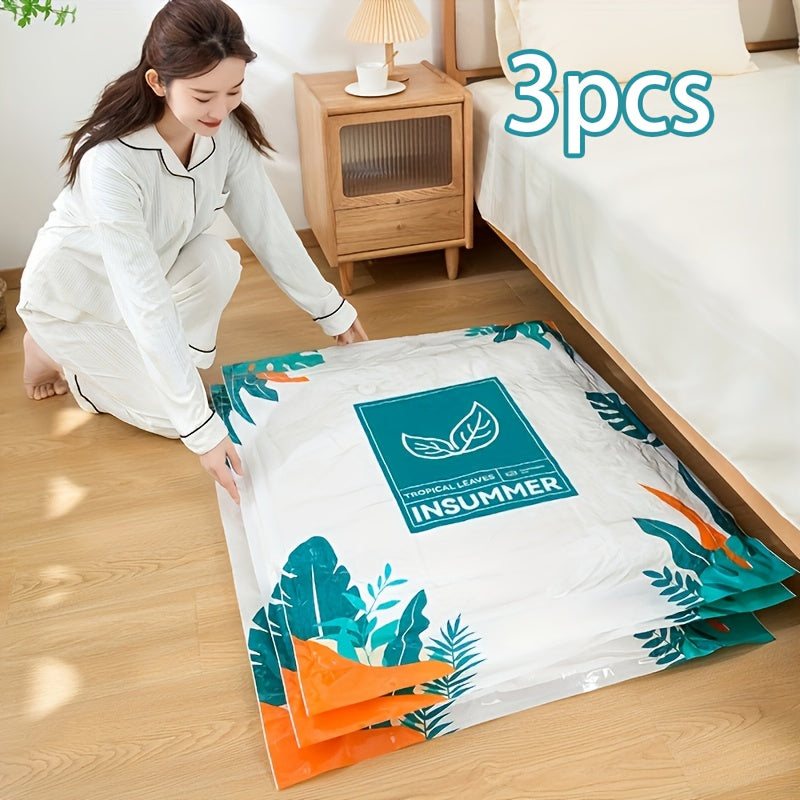 Bolsas de almacenamiento al vacío HEART LEAF de 3 paquetes, bolsas de plástico con diseño de hojas tropicales para ahorrar espacio, edredones, mantas, ropa de cama, ropa - No se necesita energía, otros (organizadores de accesorios)