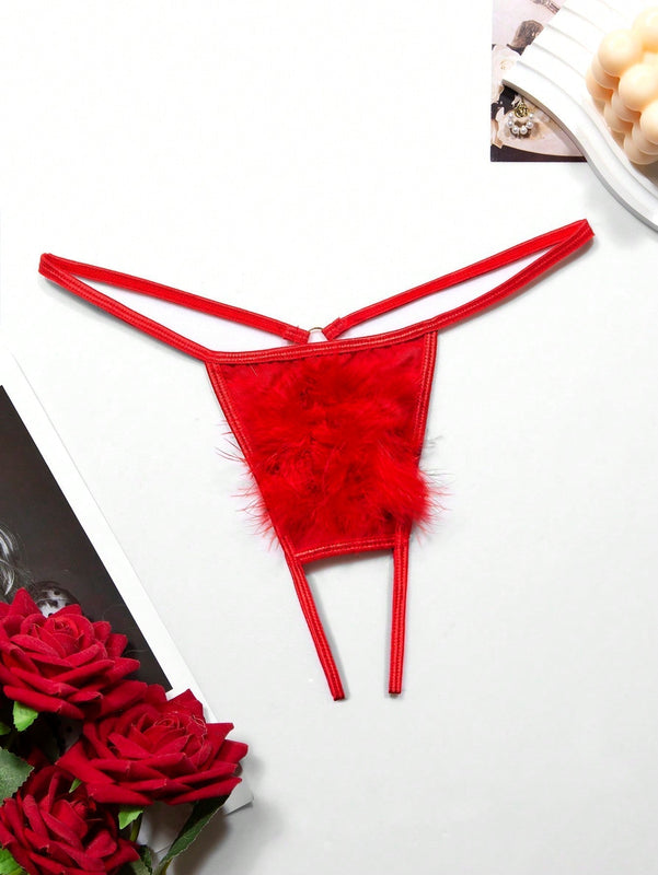 Classic Sexy Pantaleta trasera en T de felpa de color puro y sexy para mujeres con abertura en la entrepierna