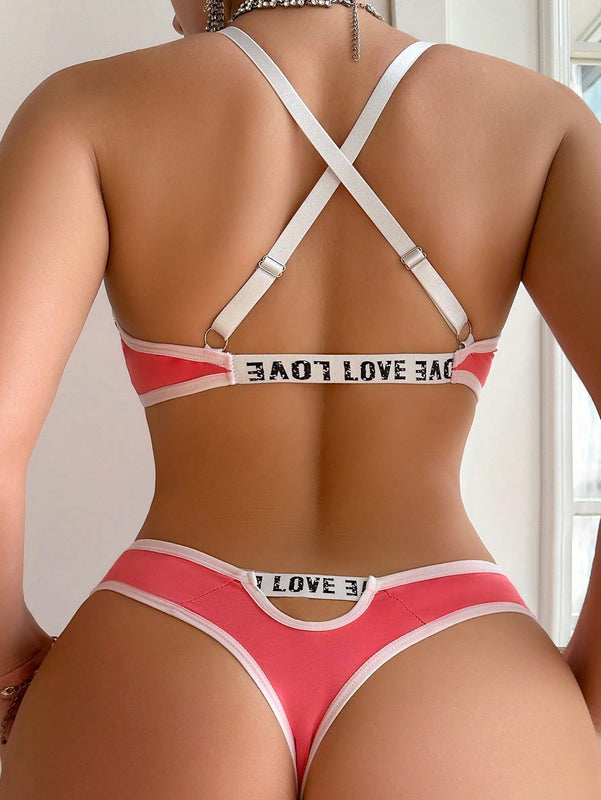 Conjunto De Bralette Y Short Con Estampado De Letras Y Tirantes