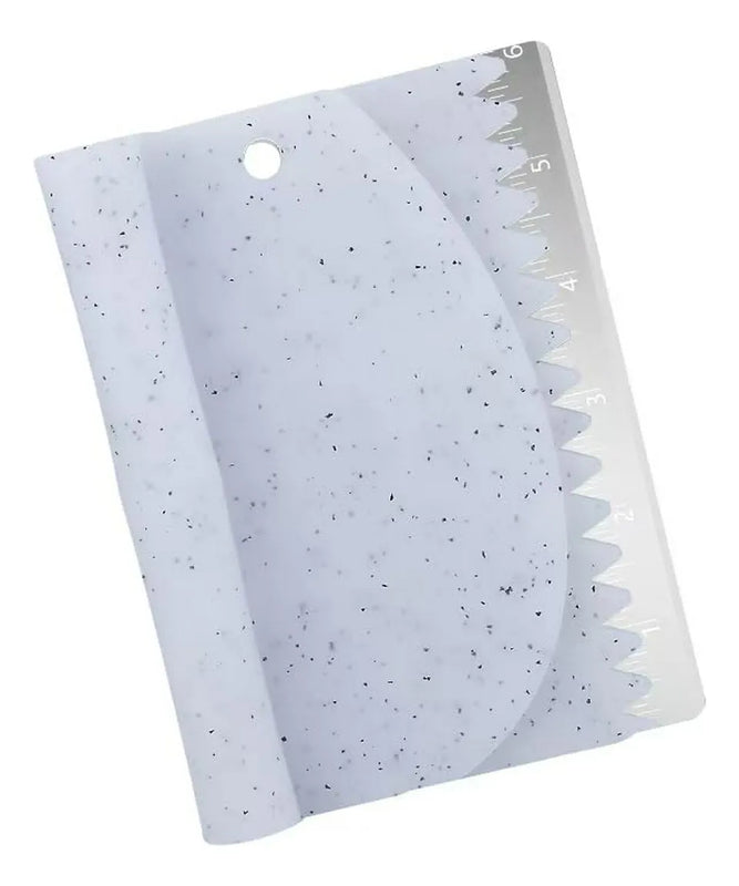 - El borde ancho del raspador de plástico es flexible y ligeramente afilado, ideal para cortar masa en una superficie de silicona.