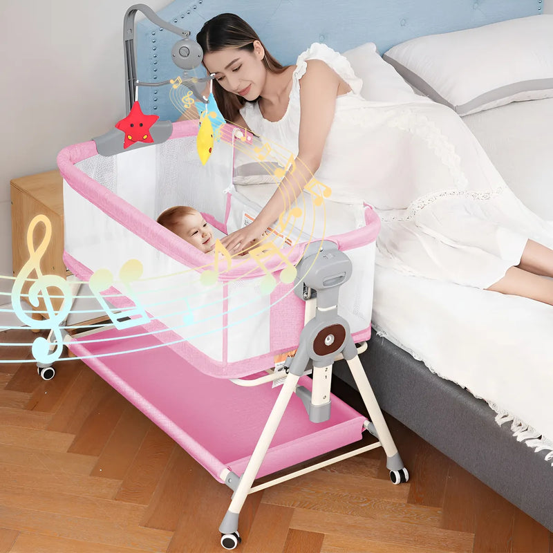Cuna Mecedora 3 En 1 Para Bebé Rosa Con Música Y Almacenamie