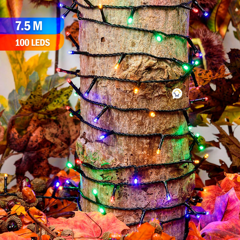 Extensión Luz LED Lineal 100 Luces 7.5m Cable Verde Multicolor 1433