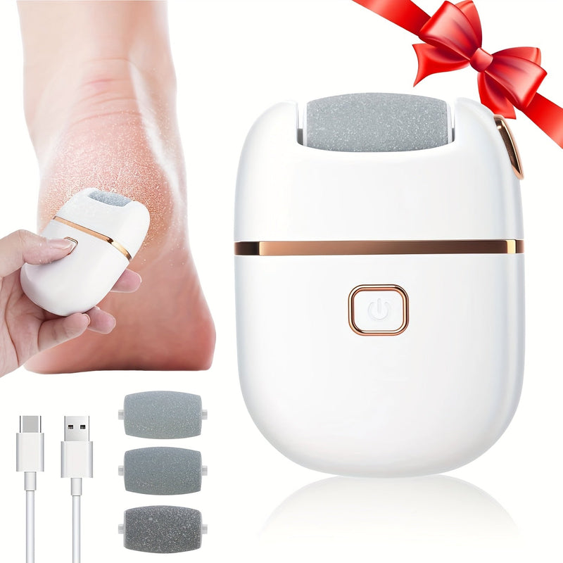 Fila de pies eléctrica, eliminador de pies eléctrico, herramienta de cuidado de pies recargable, 2 velocidades, kit de 3 cabezas de reemplazo, adecuado para pies secos, duraderos, quebrados, claros, beige.