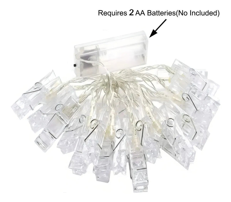 Guirnalda De Luces Led 20 Broches Para Fotos A Pilas 3 Mts Color De Las Luces Blanco