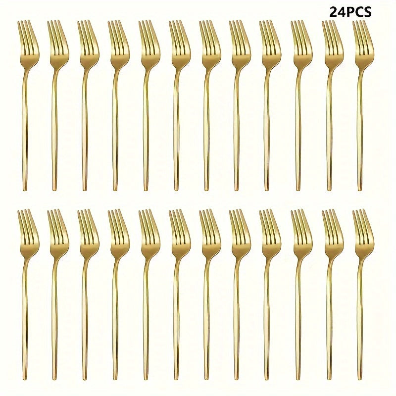 Juego de 24 piezas de tenedor de acero inoxidable con acabado pulido, disponible en colores dorado y plateado - Accesorios de cocina y comedor