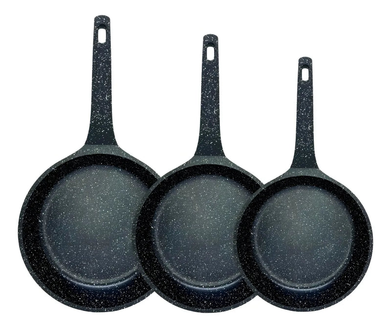 Juego Completo: Incluye tres sartenes de diferentes tamaños (20cm, 24cm y 28cm), cubriendo tus necesidades para cocinar desde porciones individuales hasta grandes cantidades.