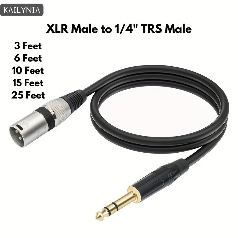 KAILYNIA Cable de audio balanceado profesional TRS macho de 1/4" a XLR macho, para conexión de mezclador y micrófono - Negro, tamaño universal, 3 pies/6 pies/10 pies/15 pies/20 pies/30 pies, 1 paquete, forma redonda, conector macho a macho, cable Etherne