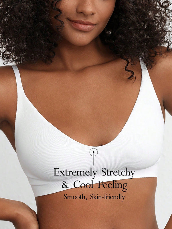 Leisure Sujetadores monocromaticos de alta elasticidad sin costuras diseno acanalado livianos y comodos-Blanco