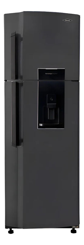 Nevera Haceb de 311L en color titanio con un diseño robusto, manija externa y dispensador de agua renovado, es la combinación perfecta de comodidad y estilo para tu cocina.