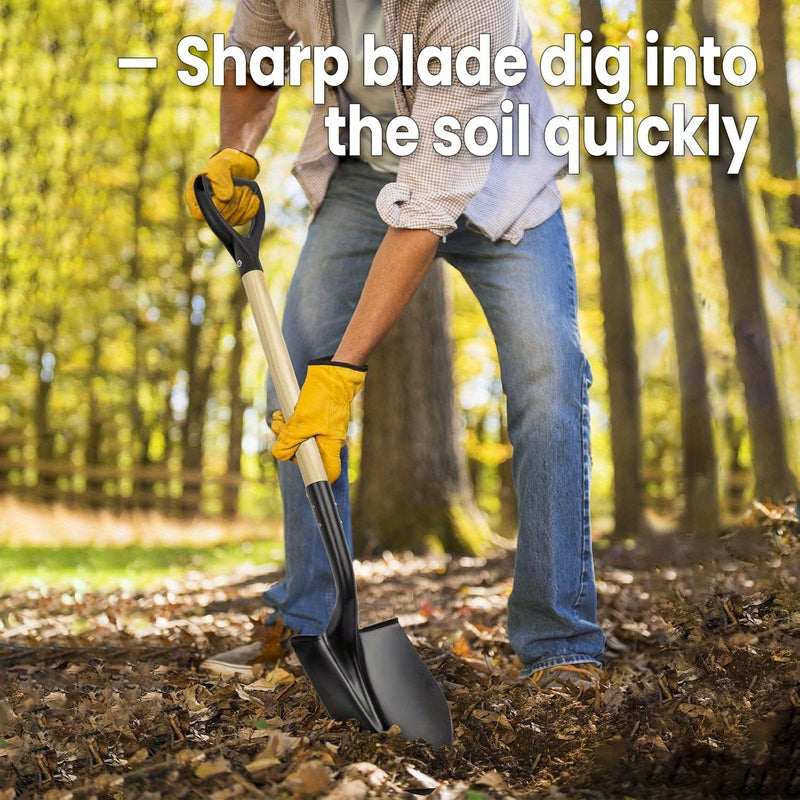 Paleta Redonda de 27 Pulgadas con Mango de Madera y Cabeza Metálica - Herramienta Multiusos para Jardín, Playa y Nieve, Ideal para Profesionales del Paisajismo y Hogares, Construcción Duradera y Resistente