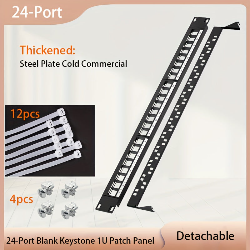 Panel de Conexión Keystone 1U de 24 Puertos, Montaje en Rack Metálico de 19 Pulgadas, Espesor Aumentado de 1.5mm, Tomas Keystone Cat6/Cat6a/Cat7 (Vendidas por Separado), Barra de Gestión de Cables Incluida,