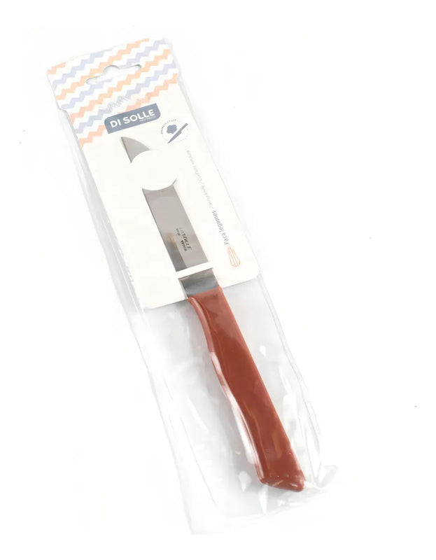 Cuchillo de acero inoxidable de la línea Paraty Di Solle. Equipado con un tratamiento térmico para garantizar la resistencia y durabilidad de su hoja, ofrece un filo afilado con un alto poder de corte. Perfecto para la preparación de comidas diarias, este cuchillo añade practicidad y calidad a tu mesa. Con los utensilios de Disolle, eleva el estilo y profesionalismo de tu cocina, impresionando a todos con tus platillos.