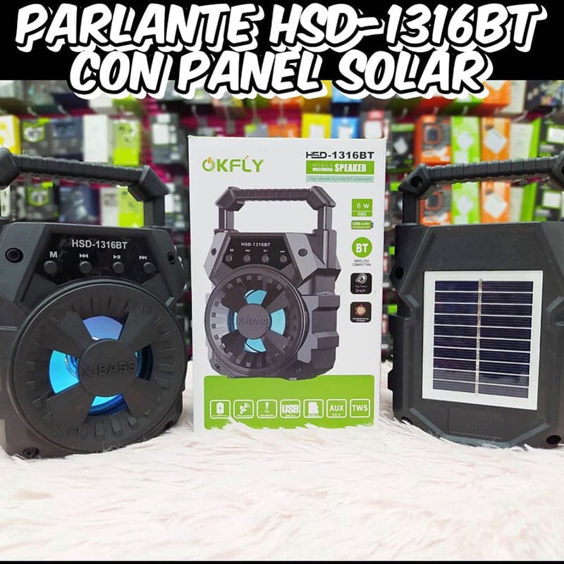 - Parlante Portátil Okfly HSD-1316BT con carga solar.
